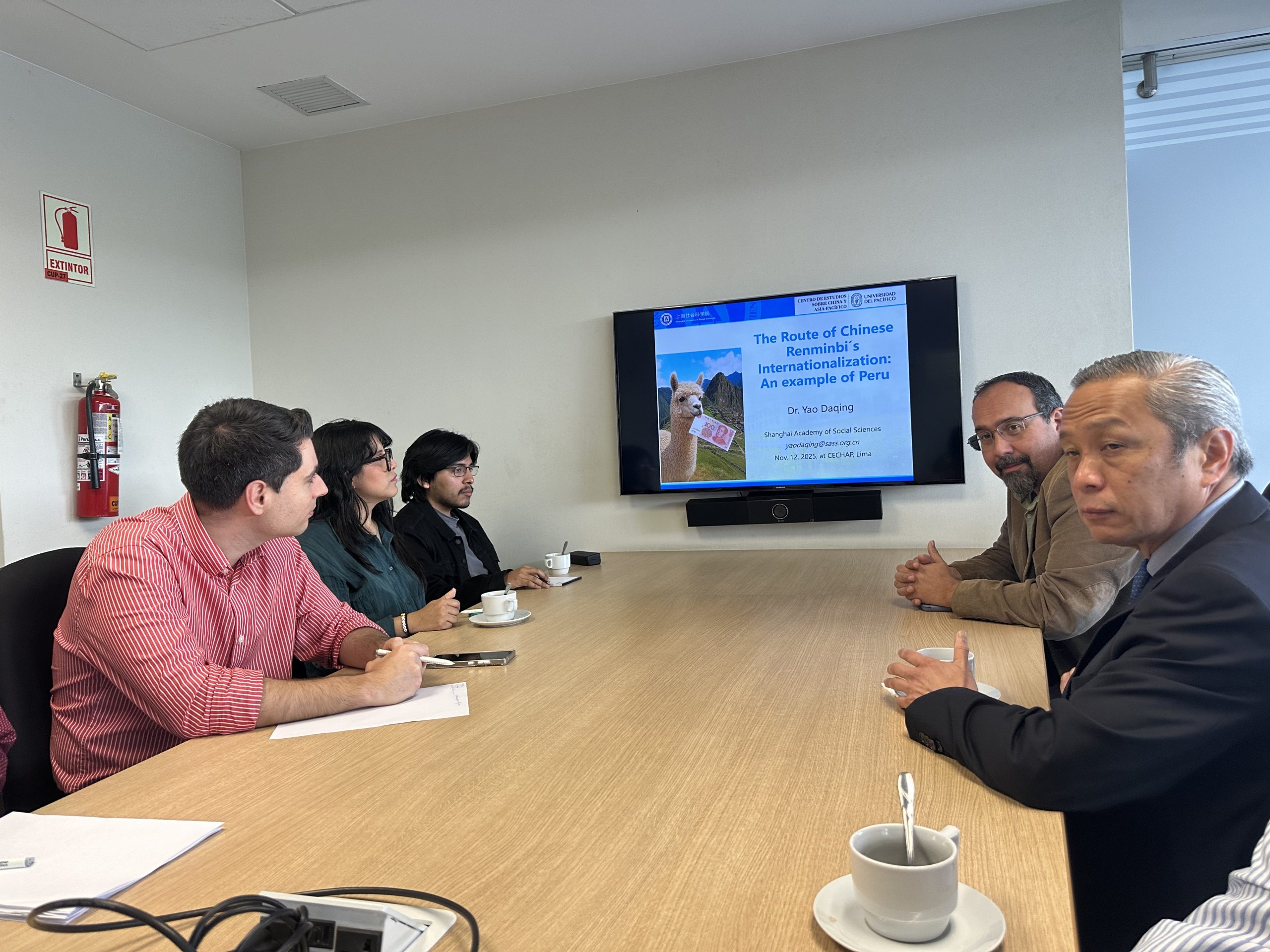 On October 12, 2025, Yao Daqing delivered a lecture at Universidad del Pacífico titled “The Route of Chinese Renminbi’s Internationalization: An Example of Peru.” Yao is a research professor at the Institute of World Economy of the Shanghai Academy of Social Sciences (SASS) in China and holds a PhD in Economics from Fudan University. At SASS, Dr. Yao is a member of the Office of International Finance, where he conducts research on international monetary theory, the internationalization of the renminbi, and related topics.