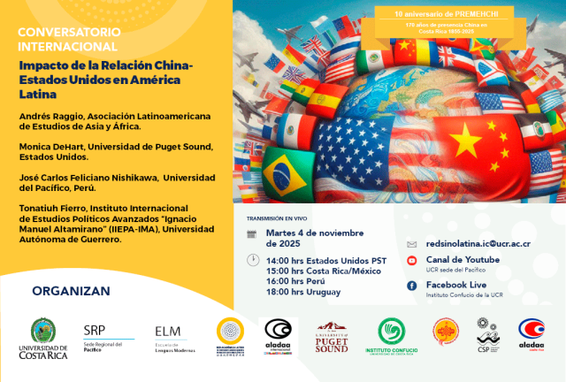 On Tuesday, November 4, 2025, Jose Carlos Feliciano Nishikawa, Deputy Director of CECHAP, took part in the conference “Impact of the China–United States Relationship on Latin America”, organized by the Red Academica Latino (e Hispano) Americanista sobre Estudios Sinológicos of the Universidad de Costa Rica and the Latin American Association for Asian and African Studies (ALADAA).