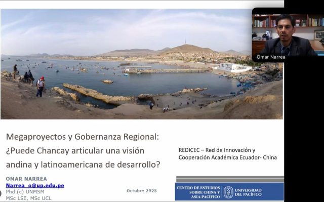 On October 22, 2025, CECHAP researcher Omar Narrea participated in the International Conference “The Port of Chancay as a Strategic Platform: Perspectives from Peru, Ecuador, and China for Regional Development”, organized by Red de Innovación y Cooperación Académica Ecuador-China (REDICEC), a network for academic cooperation between Ecuador and China.