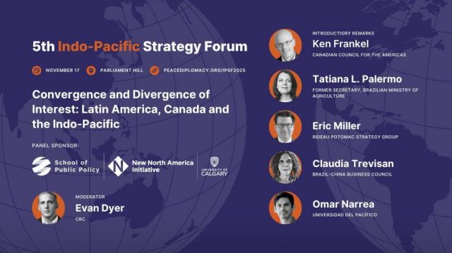 El 17 y 18 de noviembre de 2025 se realizó en Parliament Hill, Ottawa, la quinta edición del Indo-Pacific Strategy Forum (IPSF), un espacio de alto nivel dedicado al análisis estratégico del entorno geopolítico y comercial del Indo-Pacífico. En esta edición, el eje central giró en torno al tema «The Post-Rules Trade Order: From the Indo-Pacific to the Americas«, con el objetivo de identificar nuevas perspectivas sobre el rol de Canadá en la economía global y sus oportunidades de articulación con América Latina frente a la reconfiguración de cadenas de suministro, las tensiones geoeconómicas y la incertidumbre en la gobernanza del comercio internacional.